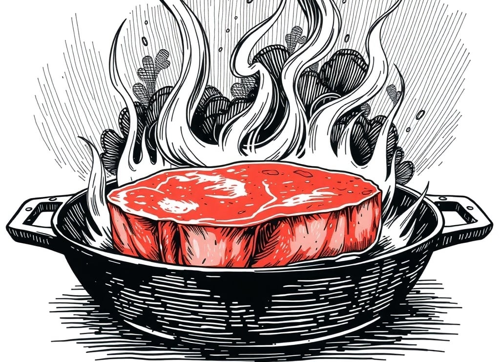 Wenn Fleisch in eine zu kühle Pfanne kommt, sinkt die Temperatur sofort unter die magische 140°C-Grenze. Das Fleisch beginnt zu kochen statt zu braten – in seiner eigenen Flüssigkeit. Es wird zart, ja. Aber die Kruste bleibt aus, die Aromen entwickeln sich nicht, und das Ergebnis schmeckt flach.